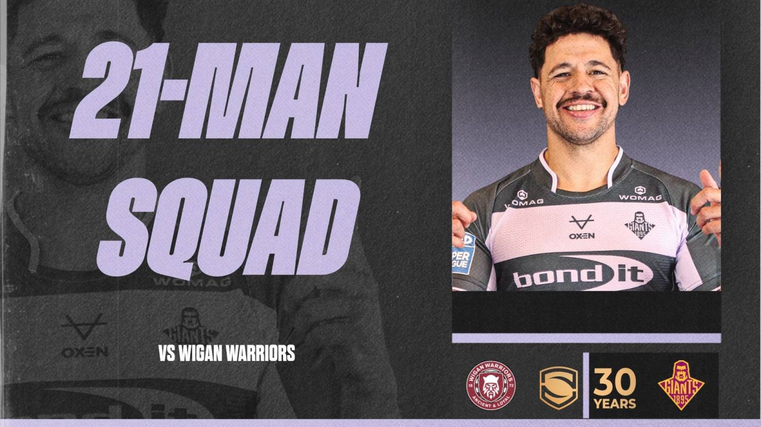 Club Captain Adam Clune returns to the squad, alongside Niall Evalds for the first time this season, a huge boost for the Giants, with Connor Wrench also named alongside loan signing Jacob Douglas.